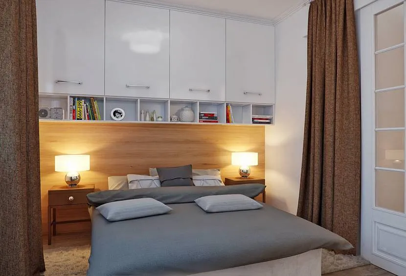 В маленькой спальне не должно быть лишней мебели, достаточно будет удобной кровати и места для хранения вещей
