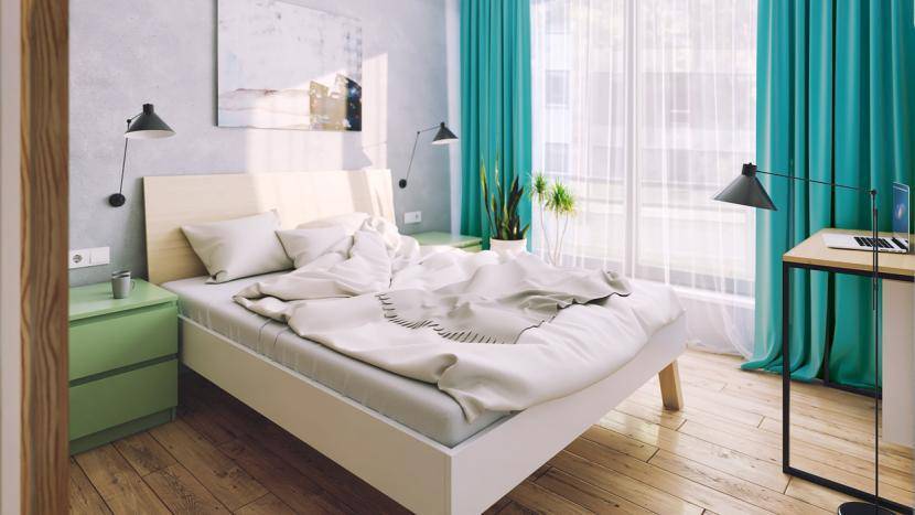 | Дополнительная комната. Под отдельную спальную удастся даже создать планировку в однокомнатной квартире. Экономия средств. Не придется задумываться о портьерах и тратиться на них. Долговечность ремонта. Настенные и напольные покрытия, текстиль и декор не выгорят под солнечным светом. | Отсутствие вентиляции. Свежий воздух так или иначе должен попадать в помещение, а в спальне без окна добиться этого сложнее. Необходимость дополнительного освещения. В комнате без окон будет темно даже днем — а значит вам потребуется множество осветительных приборов. |