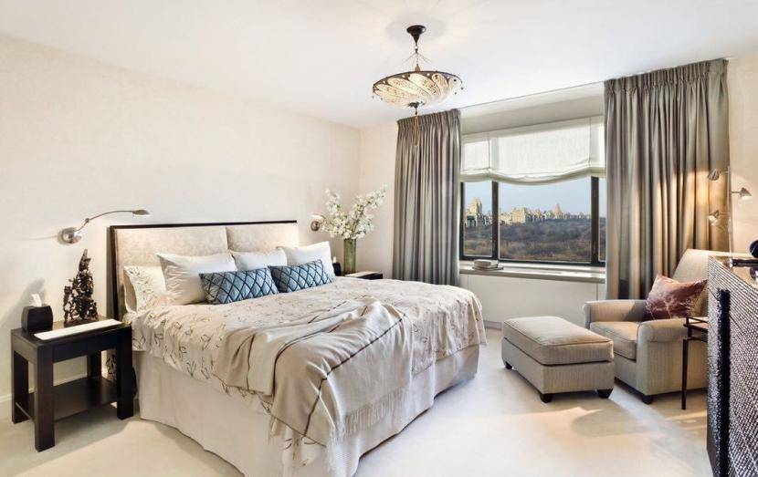 Самый распространенный вариант спальни — помещение с одним окном. Оформить подобную комнату очень легко — ограничений по стилю и направлению нет. Маленькое окно в спальне может визуально уменьшить помещение, поэтому рекомендуется использовать длинный карниз от стены до стены и прямые светлые шторы.