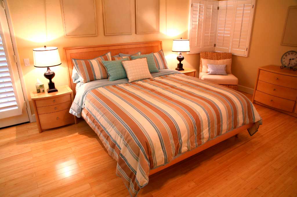 Памятуя, что спальня – помещение небольшое, цвета для декора этой комнаты нужно подбирать аккуратно. Скорее всего, вам придется отказаться от темных тонов, которые нещадно «крадут» драгоценные метры. И это еще не последняя «жертва». Вам предстоит отказаться и от рисунка на обоях. Пусть в спальне будет чистое оформление. Вот что не помешает в декоре в этом случае, так это горизонтальные полосы. Ими вполне можно разбавить стены. Последние,словно раздвинутся, наполняя комнату простором. Цветовую гамму берите в одном спектре. Попробуйте остановиться на бежевом. У этого теплого цвета огромная палитра, составляющие которой просто потрясающе сочетаются. Можно использовать классику. Сочно смотрится комбинация зеленого с белым и древесным. Она подарит спальне свежесть настоящего леса. Для детской спальни хороша комбинация белого с розовым или голубым. Комната получится радостной, яркой и просторной.
