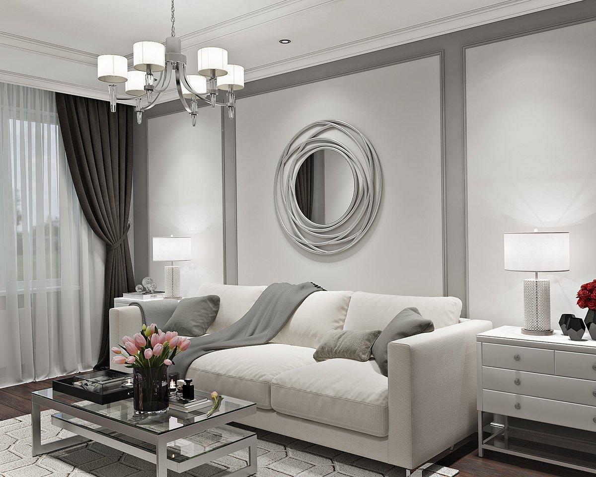 Ахроматические цвета дают гармоничное сочетание, не напрягающее глаза и хорошо подходящее как для малогабаритных, так и для более просторных комнат. Интерьер гостиной в бело-серых тонах может быть разным: для уютной камерной обстановки лучше подойдёт сливочный или молочный оттенок (т. е. не ярко-белый).