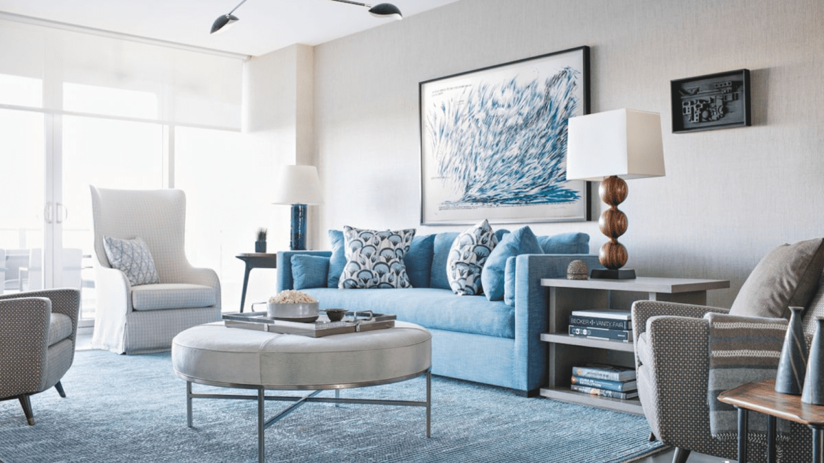 Чтобы избежать ошибок при использовании этого оттенка, дизайнеры советуют комбинировать его с теплыми тонами. Контраст позволит смягчить строгость синего, и комната приобретет более уютный вид.