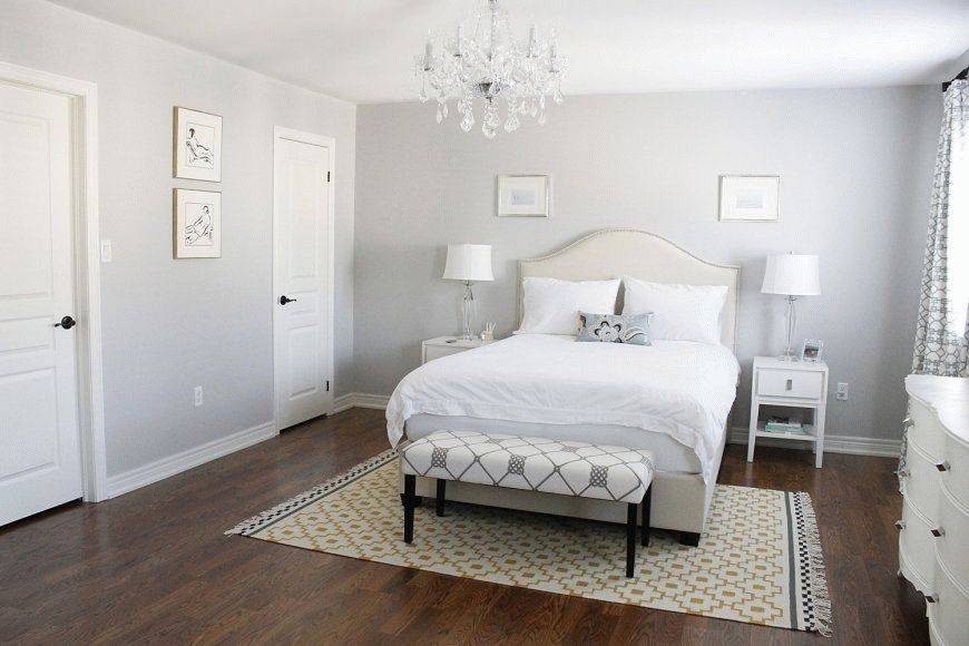На заметку! В спальне с серым напольным покрытием усиливается шумоизоляционный эффект. Серая отделка стен ассоциируется с металлом, этот оттенок создает эффект прочности.