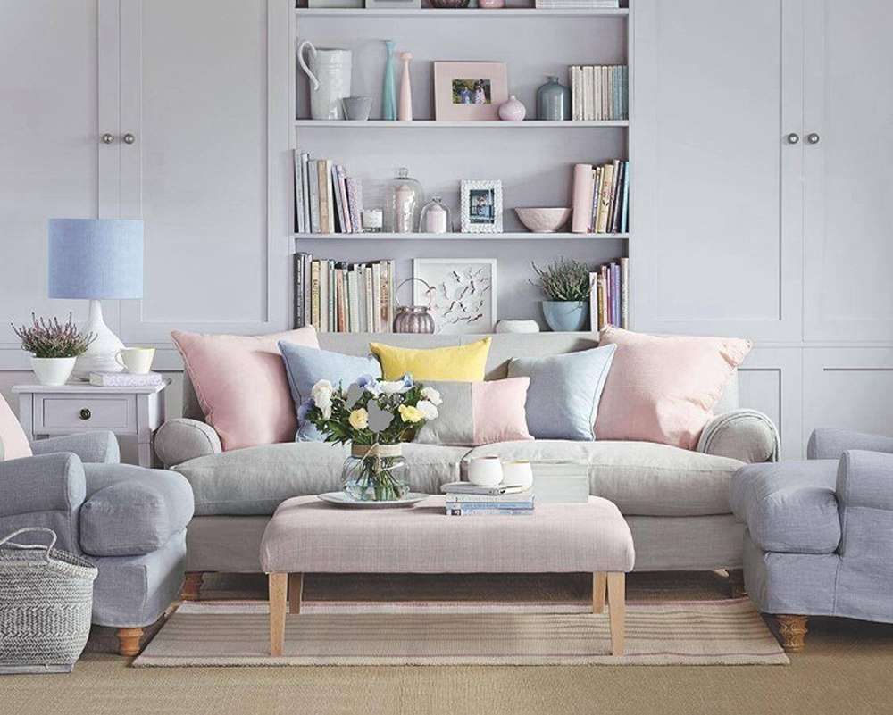 - Пастельные желтый и голубой хорошо будут смотреться со светло-серым. Главное правило в такой ситуации – не использовать цвета в равных пропорциях. Каждому должна быть отведена своя роль, задача и в последствие, к каждому цвету подобран партнер в интерьере;