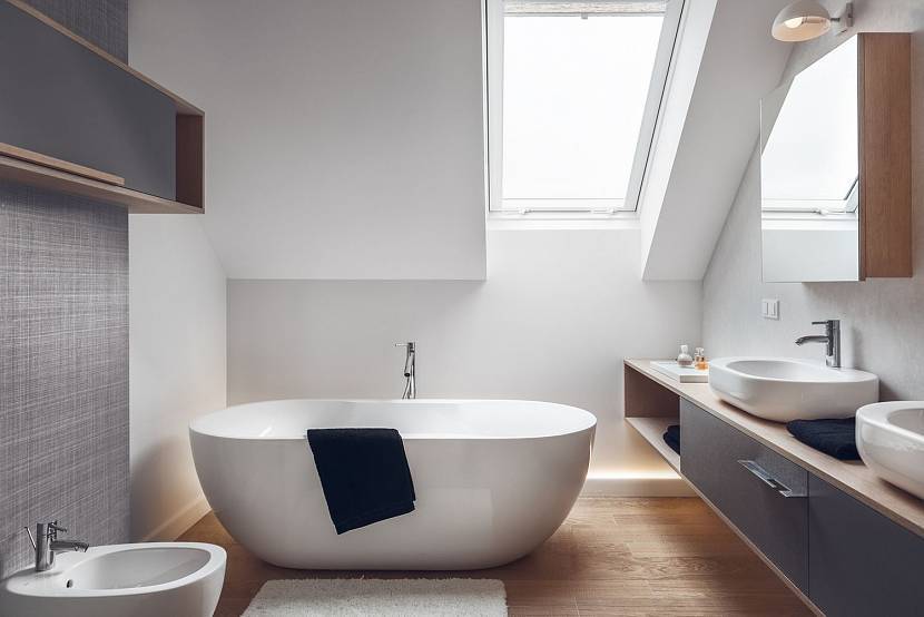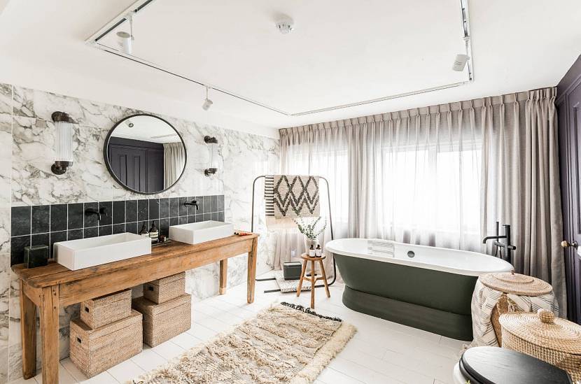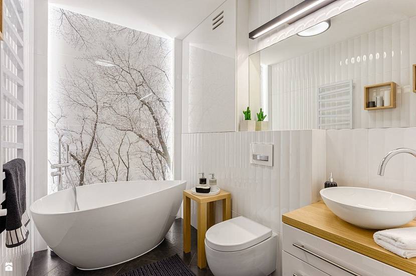 Ванная выполнена в нестандартном элегантном скандии стиле – натуральные материалы, гладкие поверхностиИсточник thearchitect.pro