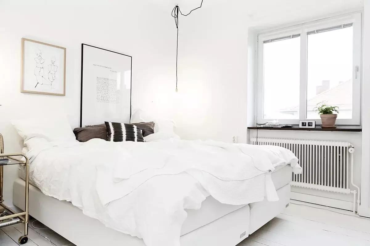 Идеальным выбором для скандинавского стиля будет именно белый цвет. Он подойдет для тех людей, которые больше всего ценят уют и спокойствие. Не нужно переживать из-за того, что в комнате будет много белого цвета, так как он красив сам по себе, а также прекрасно гармонирует с малыми акцентами в виде яркого декора.