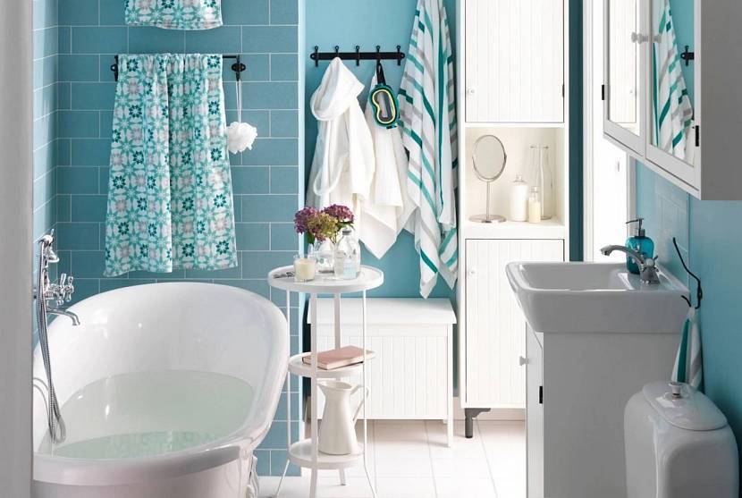 Первый постулат организации ванной в скандинавском стиле – это движение ко всему природному, натуральному и естественно сбалансированному. Поэтому следует подбирать мебель только из массива, а текстиль из натуральных тканей. Нередко на подоконник, полочку или на пол ставят горшки с живыми растениями.