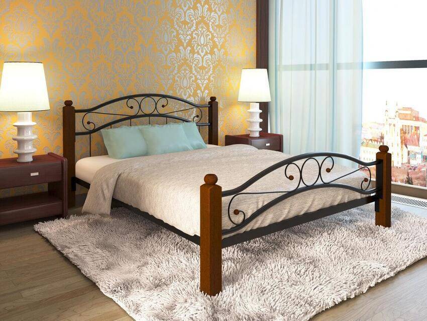Внимание акцентируется на постельных принадлежностях, а не на кованых деталях, как в классике
