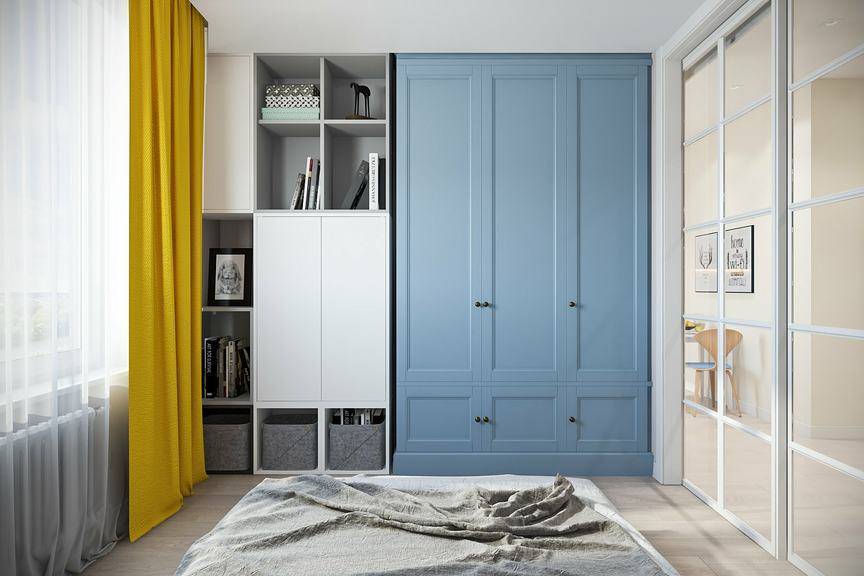 Для хранения вещей лучше использовать шкафы-купе или трансформеры, чтобы максимально сэкономить площадь.