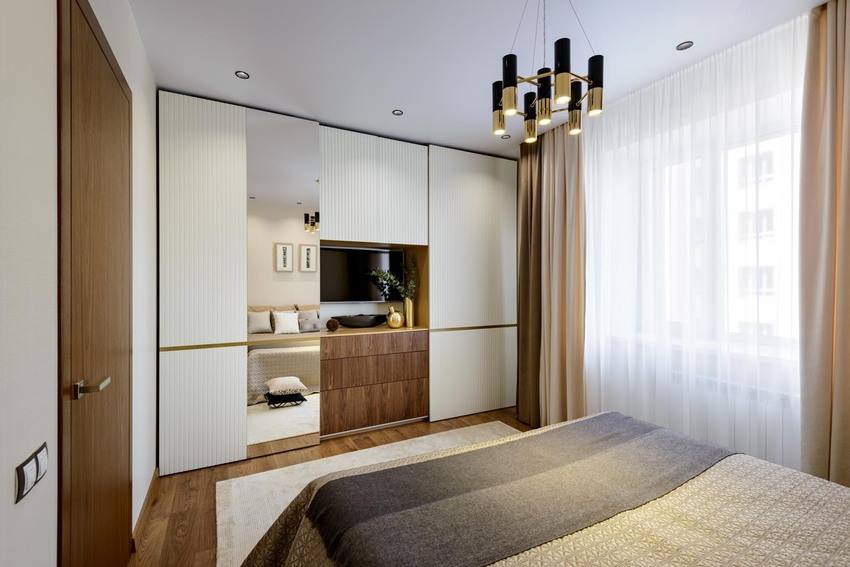 Для большинства квартир лучшим выбором станет встроенный шкаф-купе. Их основное преимущество заключается в том, что они могут вместить значительное количество предметов одежды и обуви, и при этом минимально использовать пространство спальни.
