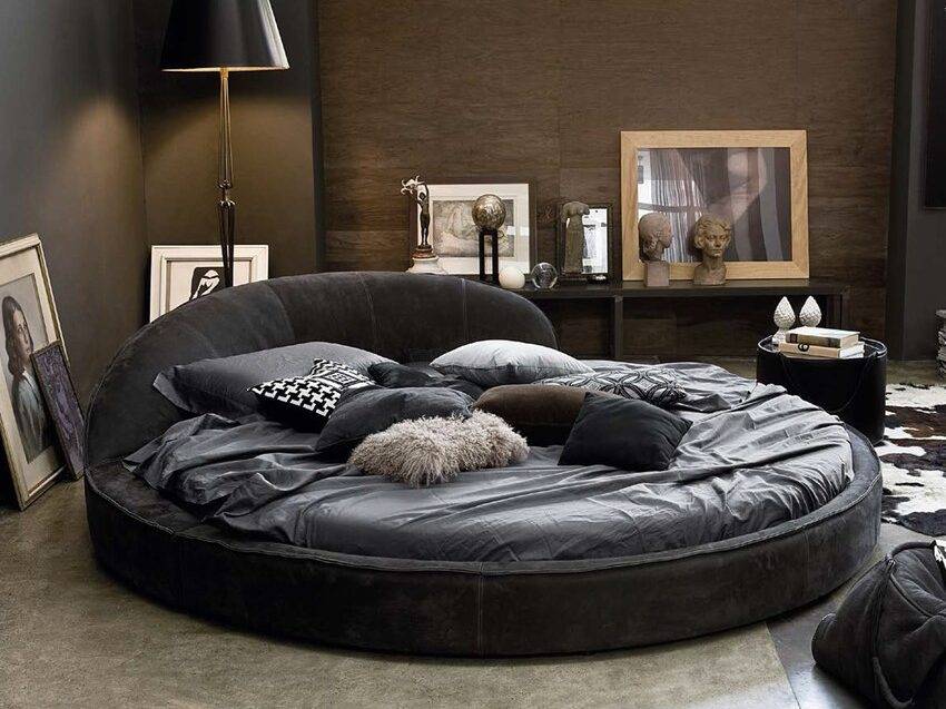 Для современных спален существуют разные модели кроватей: стандартные двуспальные и более широкие «кинг сайз», круглые и овальные, кованые и из массива дерева, на ножках и без, подвесные и даже «летающие».