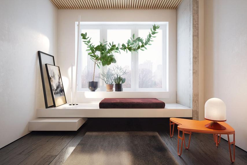 — Лишние украшения не должны забирать и без того небольшую площадь помещения. Потому, возможно даже полное отсутствие декора и частичная замена его яркими подушками и несколькими видами растений. Дополнительные (встроенные) источники света станут также и дополнительным источником уюта.