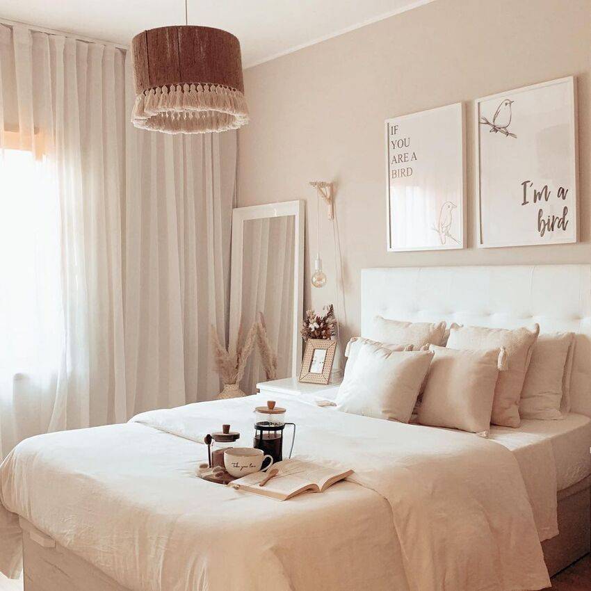 Идеи обустройства спальня в оттенках бежевого