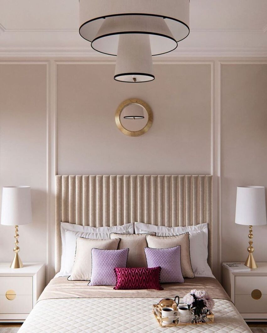 Кремовый цвет — один из наиболее уютных в бежевой палитре. Он отлично сочетается как с современными интерьерами, так и с классическими, добавляя любой спальне тепла и света.