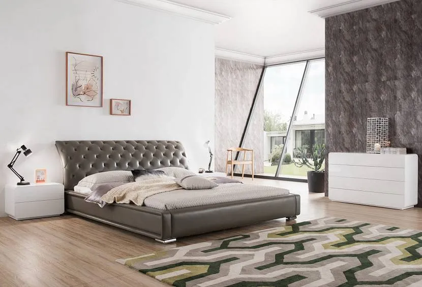Высокое декоративное изголовье кровати отлично впишется в традиционный дизайн спальни. Как правило, оно имеет мягкую обивку: кожаную или тканевую, украшенную «каретной стяжкой».