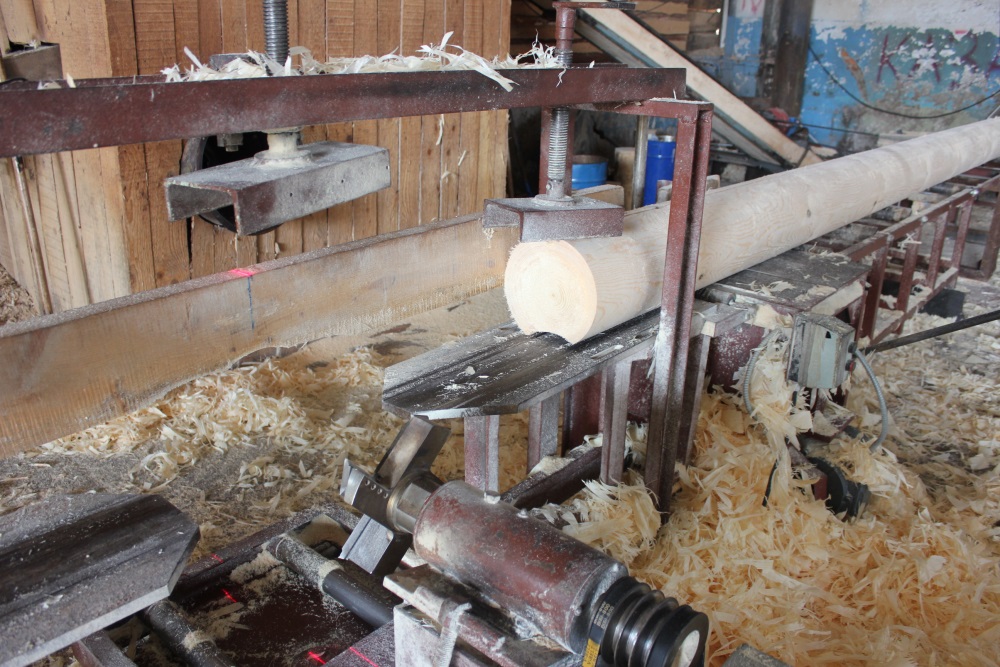 Мастера сортируют материалы по диаметрам, видам и назначению, убирают сучки с поверхности. Изготовление оцилиндрованного бревна происходит только из отборной древесины! Со стволов снимают верхний слой и укладывают так, чтобы обеспечить беспрерывную подачу пиломатериалов на станок.
