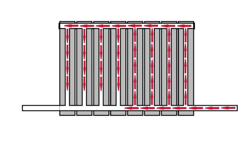 Верхнее. Теплоноситель движется по верхней доли радиатора, но обязан опуститься книзу из-за заглушки, затем подняться по пастельной секции вверх и вытечь из радиатора с иной стороны. Таким образом теплоноситель протекает сквозь всю конструкцию радиатора, и он разогревается всецело.
