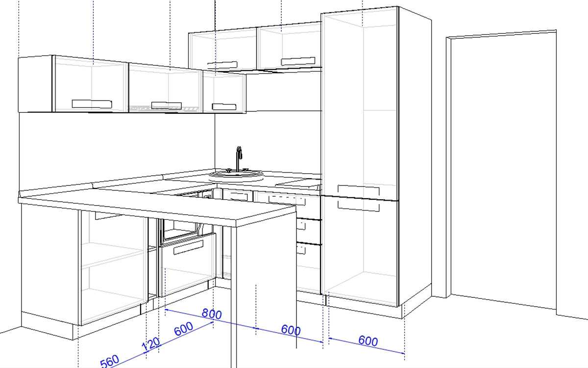 Высота подобных конструкций, как правило, совпадает с высотой кухонной мебели. Часто в них встраивают бытовую технику — духовку, микроволновку, СВЧ-печь