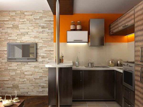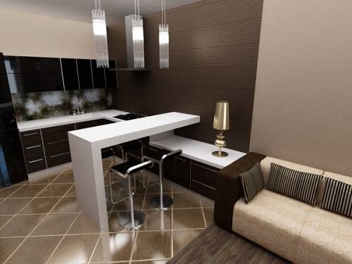 Ширина кухонной барной стойки в малогабаритной квартире может составлять 30