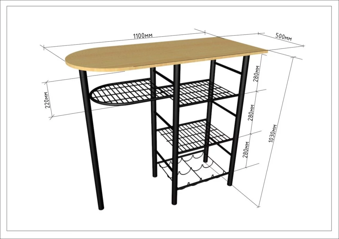 Стойки изготавливают стандартных размеров – от 0,8 до 1,3 м. Традиционной считается высота в 1,15 м. Мебель обязана быть комфортной, при этом выполнять поставленные задачи и функции. Из-за эффектного внешнего вида конструкция станет акцентным элементом дизайна и сочетается с остальными предметами интерьера