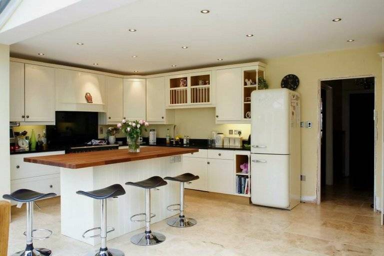 Такая стойка уместна лишь на просторных кухнях, где много свободного места или в квартирах студиях.