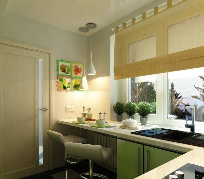 Совет! В маленьких кухнях выгодно смотрятся столешницы, совмещенные с подоконником. В этом случае можно отталкиваться от расстояния от пола до окна, просто положив столешницу под створки. Либо установить ее выше подоконника, но тогда полноценно открыть раму будет уже невозможно.
