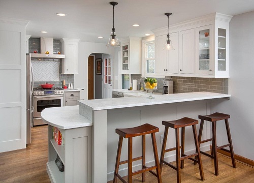 Установка на кухне барной стойки – довольно распространенное решение для современных интерьеров.