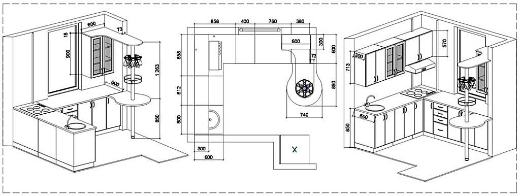 - форму столешницы выбрать можно любую, нет ограничений в пространстве;