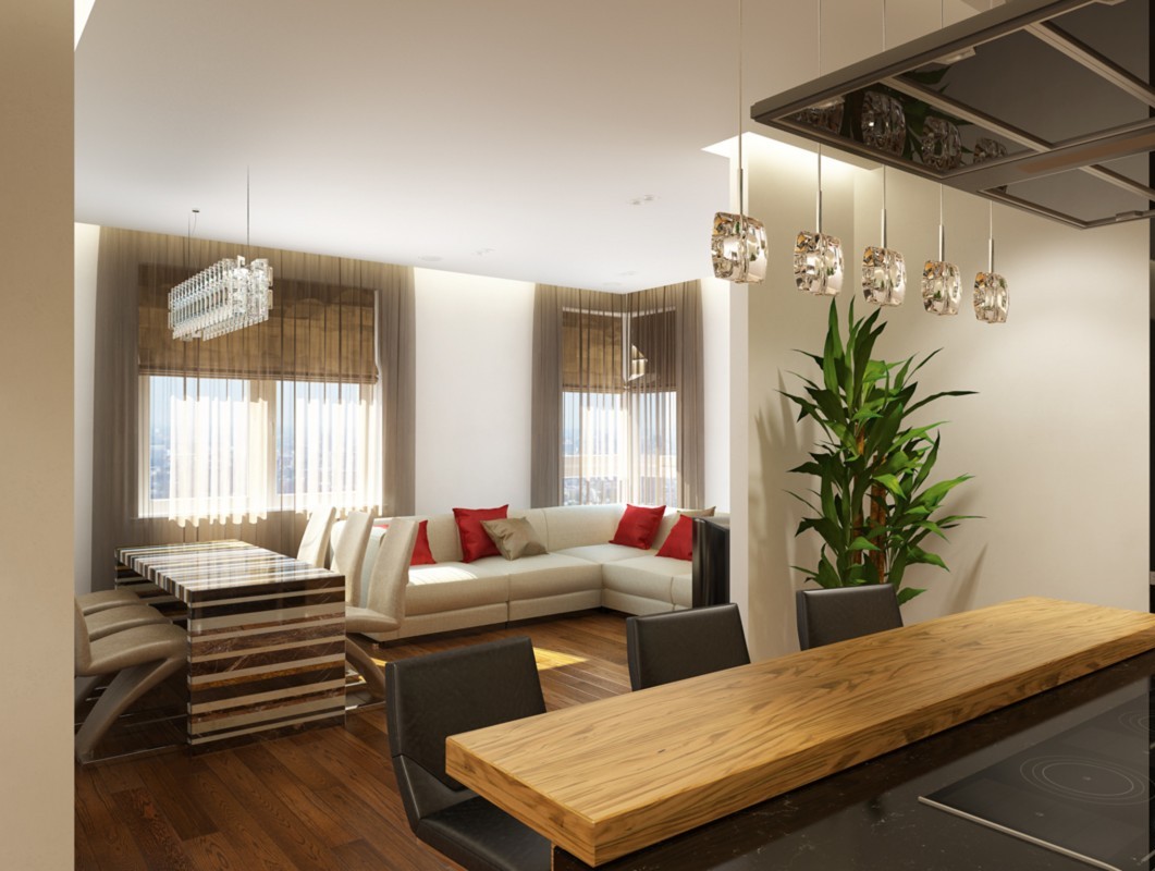 Если у Вас небольшая квартира, одним из наиболее современных способов оформления ее будет объединение кухни и гостиной комнаты. Это не только модно, но практично и функционально! Оформляя подобные интерьеры, использование барных стоек достаточно популярно! А, кроме того, что они довольно-таки эстетичны, они еще выполняют очень важную функцию – перегородки между залом и помещением кухонной зоны.