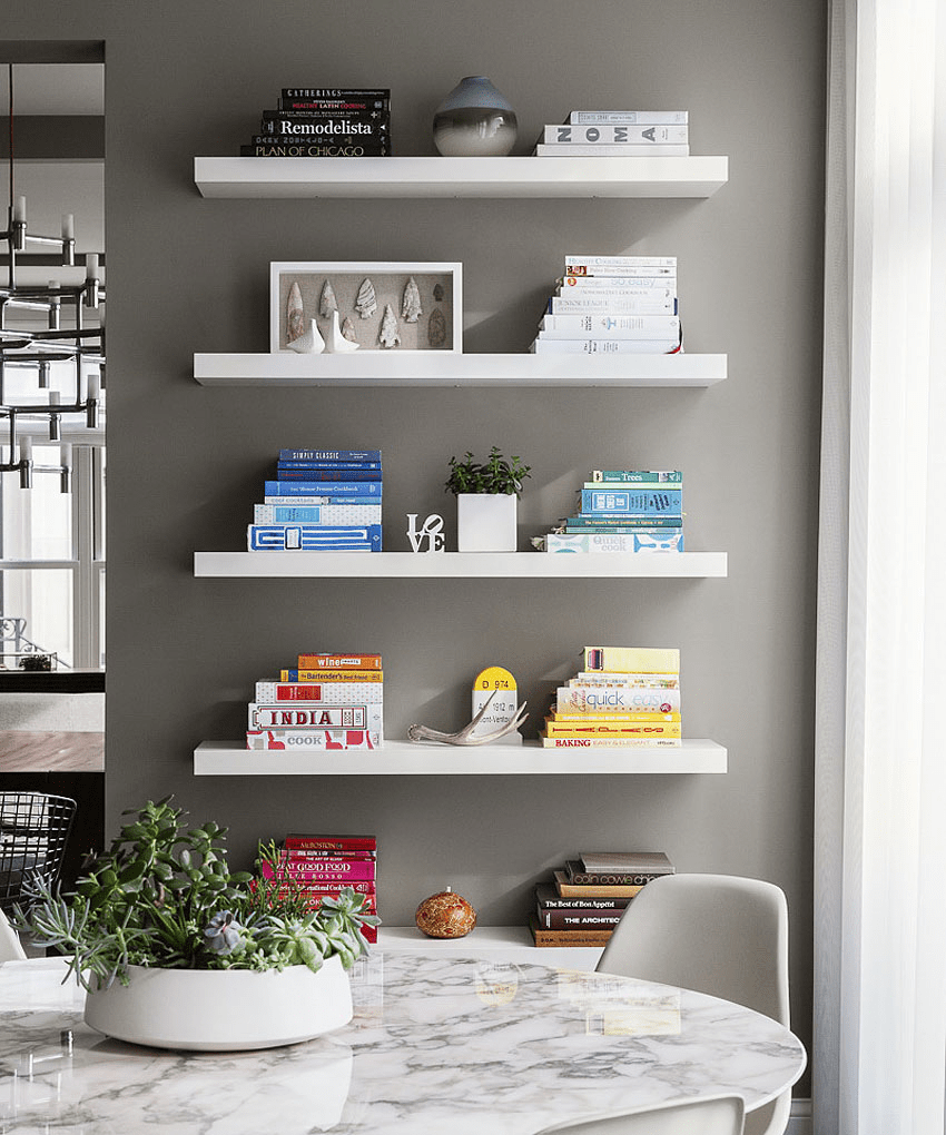Разделение на рабочие зоны и области отдыха — главная его задача, хоть и не основная. Очень кстати в большой гостиной отгородить место для рабочего кабинета. Стеллаж не загораживает собой свет, не уменьшает пространство, всегда будет светло. Он впишется в любой интерьер, не будет с ним конфликтовать, так как у него много цветовых решений.