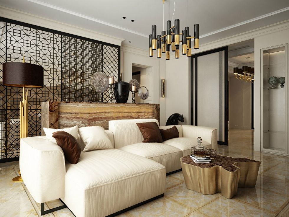 Этнические мотивы. Дополните интерьер гостиной статуэтками и масками из Африки, подлинными китайскими вазами, изящными ширмами из Страны восходящего солнца, восточными коврами с причудливыми узорами или даже шкурами тигра, зебры, медведя