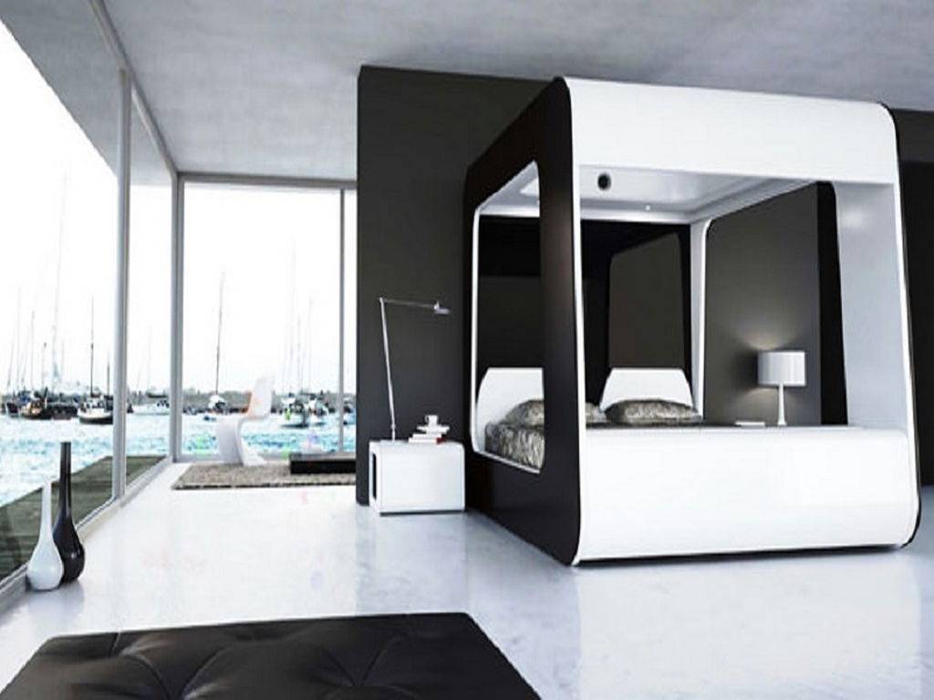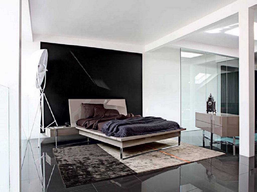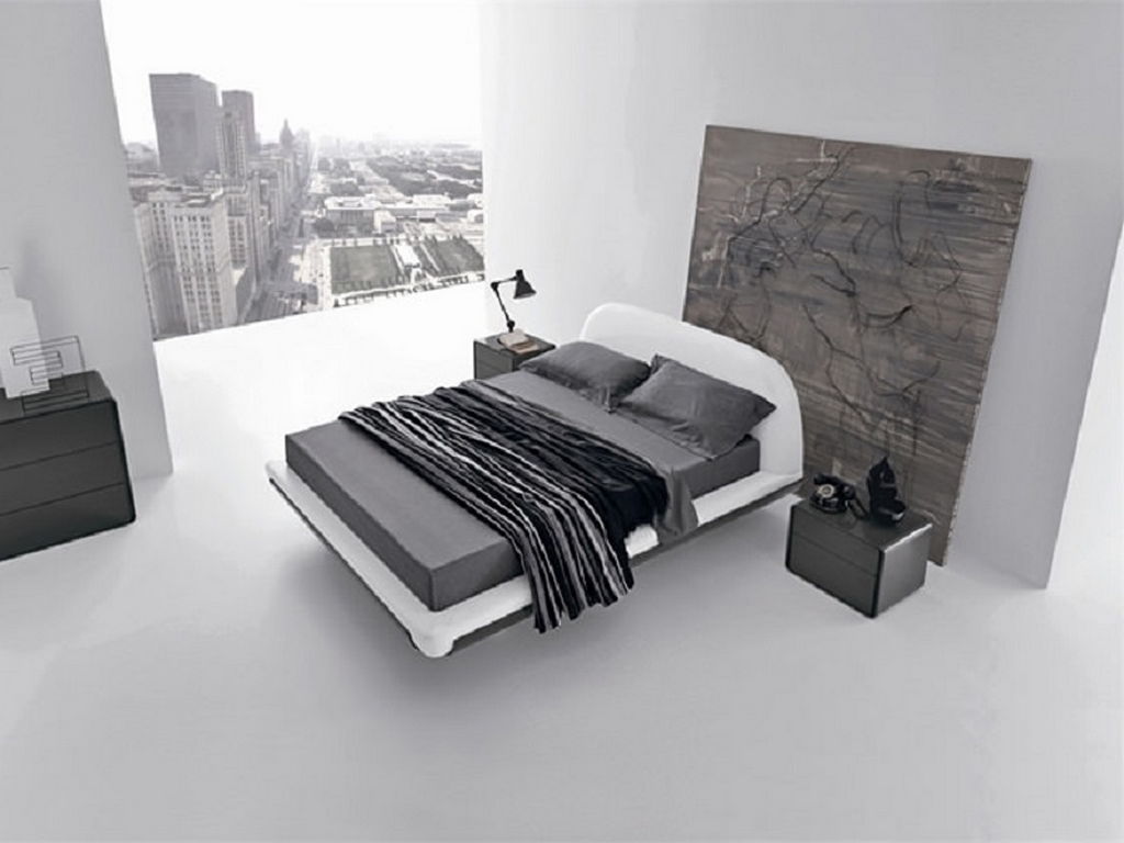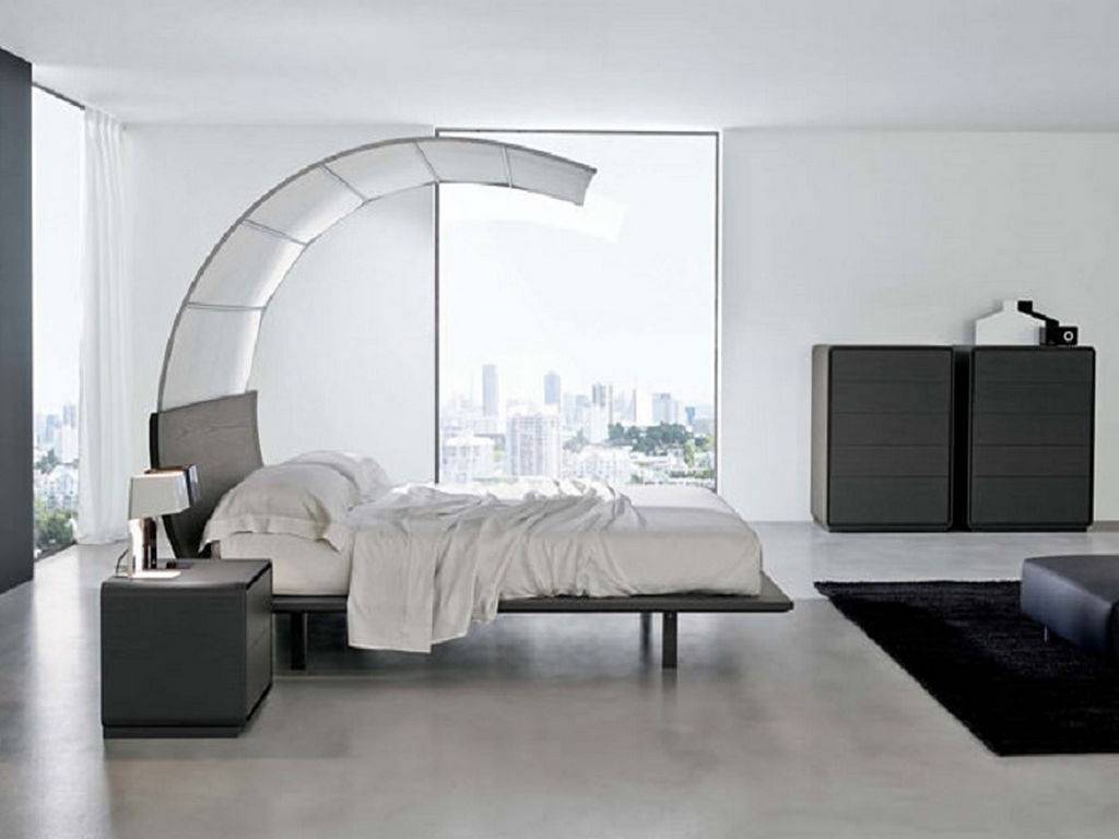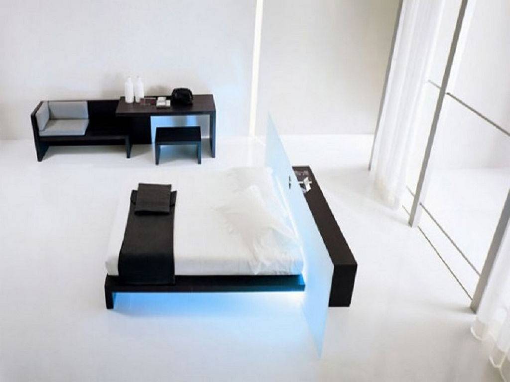 Основную функциональную нагрузку в спальне несет кровать. Обычно она стоит не на ножках, а специальном подиуме. Контрастные цвета, четкость линий и углов, заявляют о стильности. Приветствуются встроенные светильники в изголовье, подсветка и все, что придаст ей ультрасовременный вид.