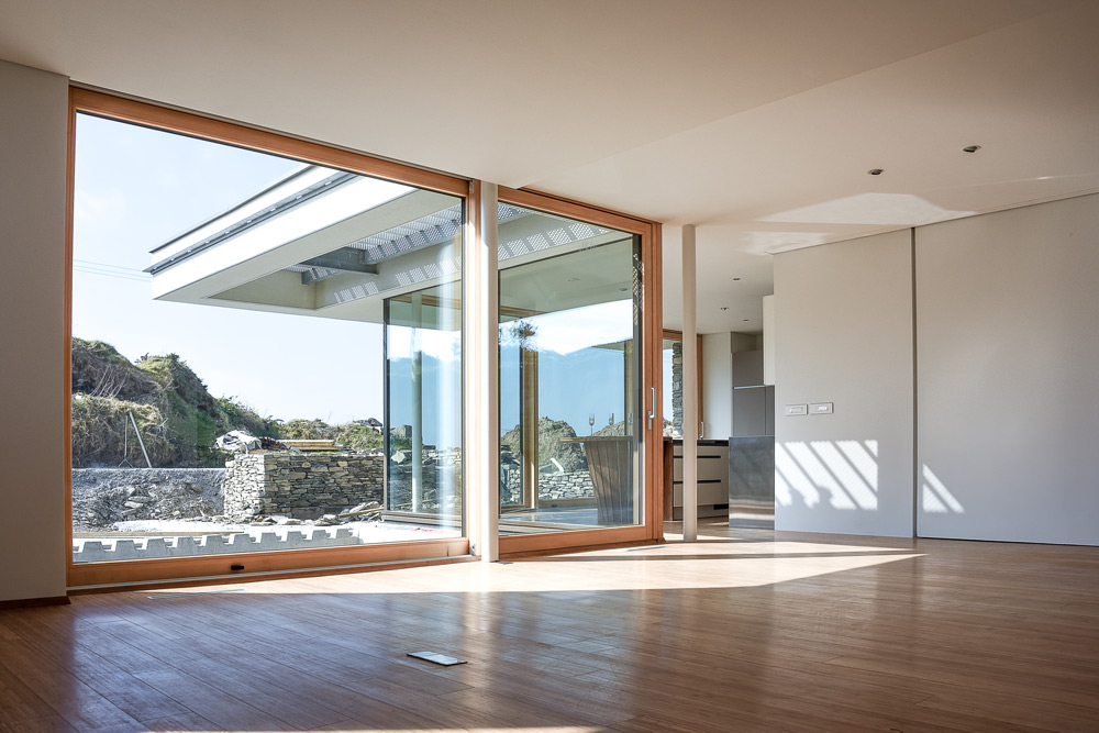 Интересны и уникальные поворотные окна и двери (см. фото ниже), которые позволяет создать нереальный, практически сюрреалистичный эффект единства интерьера и внешнего мира.