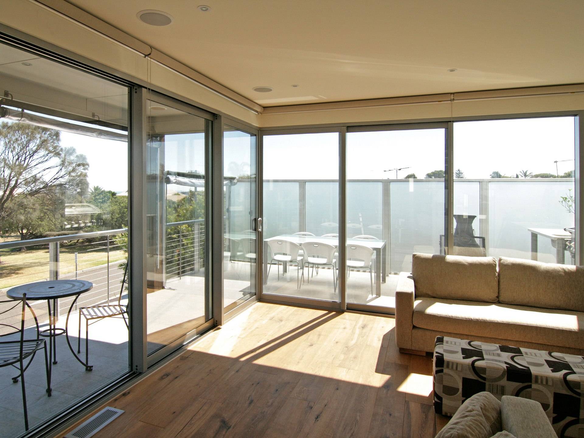 А еще при габаритном (а уж тем более панорамном) остеклении вы можете добавить двери-слайдеры на балкон, террасу или просто как доступ к перилам («французским» балконам), что делает их очень удобными для проветривания и отдыха на свежем воздухе.