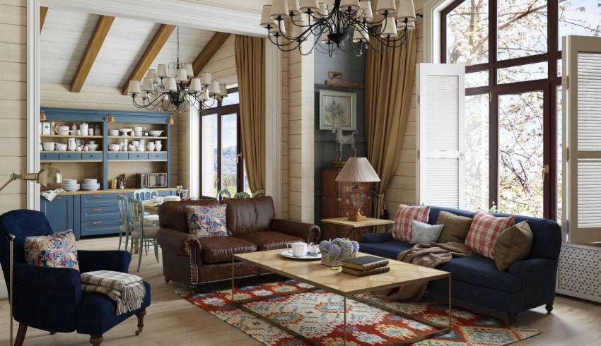Интерьер в стиле кантри должен быть максимально наполнен естественным светом