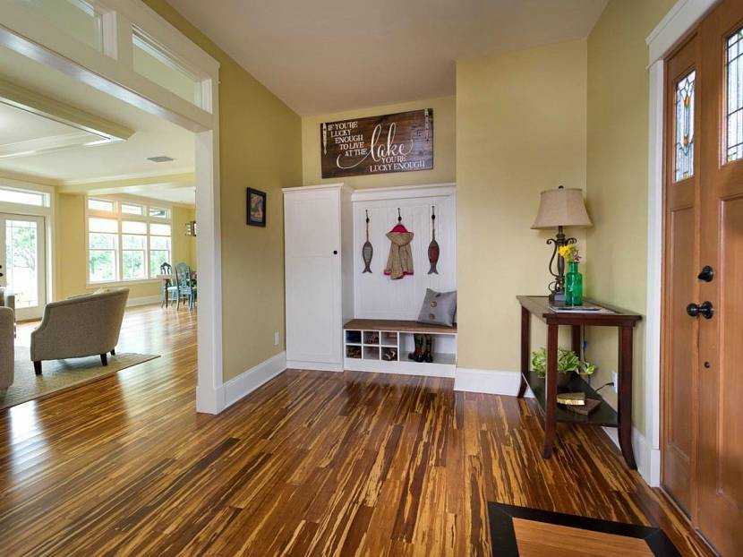 - Линолеум практически не применяется. Для пола используется керамогранит, плитку под камень или же ламинат, оформленный под дерево.