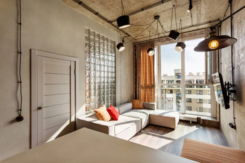 Существует возможность оформления квартиры в стиле лофт. Для этого избавляются от перегородок. Со стен убираются обои, они подбираются грубой фактуры. Мебель оставляем в минимальном количестве, которая компактна и функциональна. Света должно быть много, поэтому в типовой квартире рекомендуется позаботиться об освещении. Подумайте о мелочах, способных придать помещению индустриальный шарм.