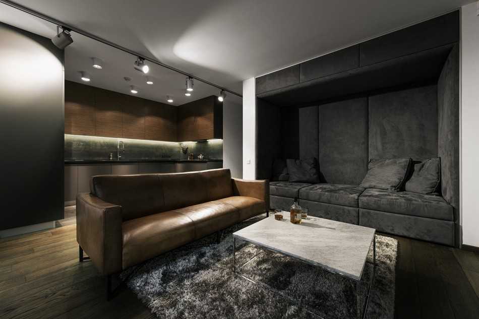 Место отдыха, встреч гостей и семейных вечеров, поэтому стоит обратить внимание на мягкие диваны из темных пород дерева и с обшивкой, гармонирующей с дизайном комнаты. К нему часто подбираются одно или два кресла из той же серии, либо одинакового тона. Практичные угловые диваны располагают в центре гостиной