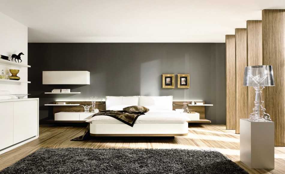 Атмосфера спальной комнаты должна располагать к отдыху. В качестве базовых рекомендуется выбирать спокойные, приглушенные оттенки. Их можно разбавить несколькими яркими аксессуарами и организовать рассеянное, мягкое освещение. Для отделки стен могут использоваться как плотные обои, так и фактурная штукатурка или краска. Для пола предпочтительнее выбрать паркетную доску.