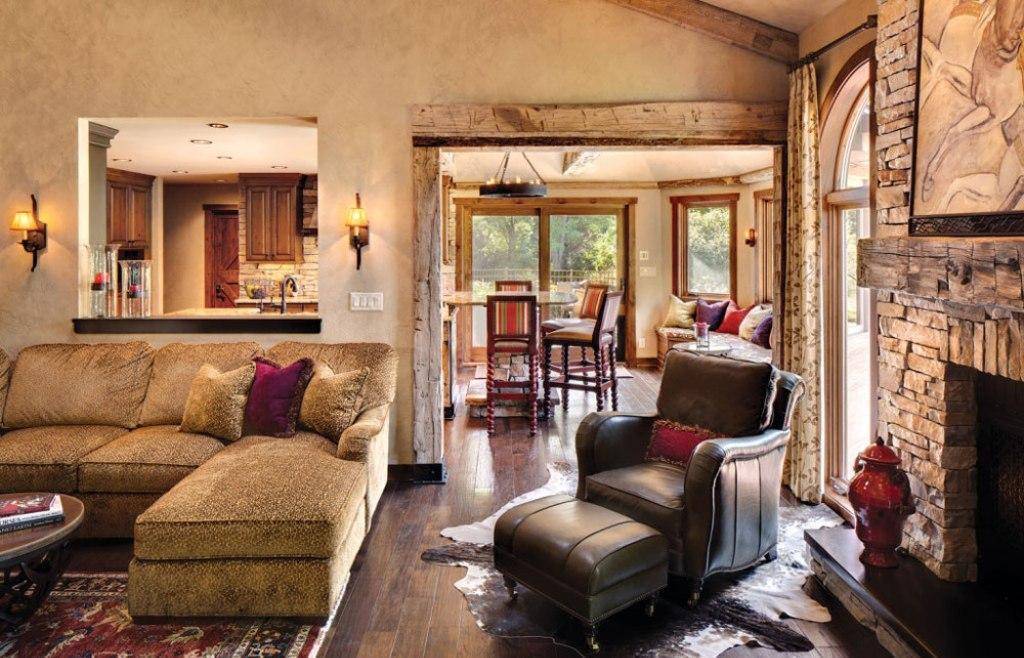 Рустикальный дизайн дает возможность создавать комфортную обстановку, настраивающую на отдых. Это направление прекрасно подходит для декорирования комнаты отдыха в загородном коттедже и в квартире.