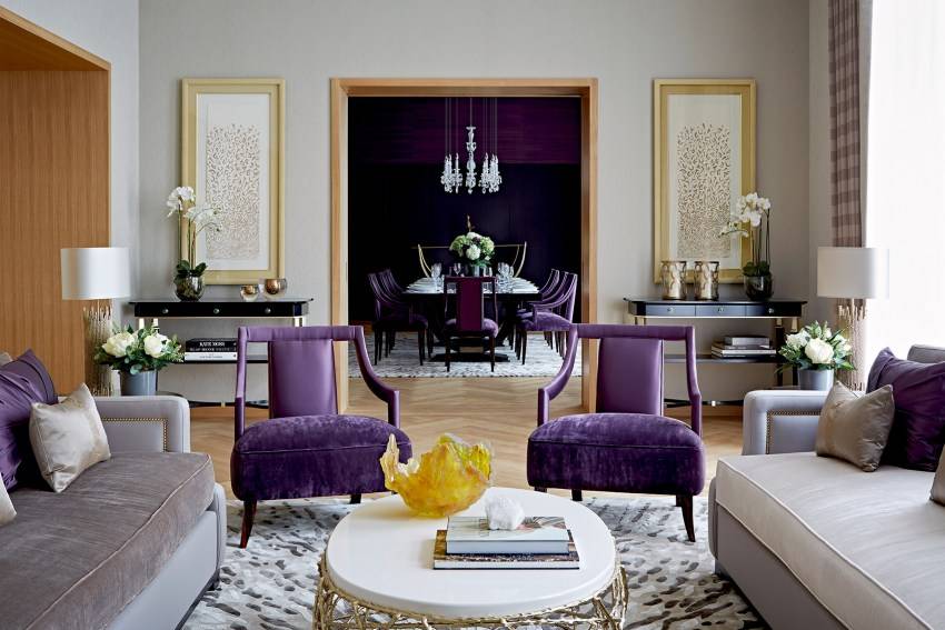 - Ар-деко — это голливудский шик 30-х годов прошлого столетия, глубокие фиалковые оттенки бархатной или шелковой обивки соответствуют претензии этого стиля на исключительность и аристократизм.