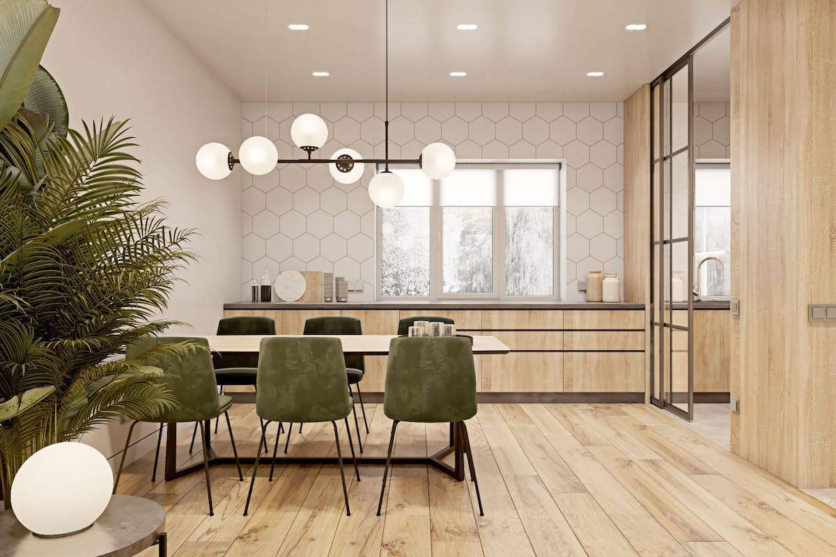 - Открытая планировка – дабы расширить пространство, кухня, например, объединяется с гостиной;