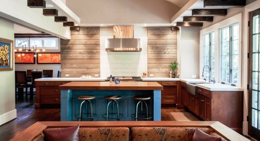 Прежде чем планировать ремонт, нужно определиться с дизайном кухни и решить, какая стилистика будет более уместной. Для этого требуется учесть особенности оформления жилья. Например, если планируется ремонт в деревянном доме, то наиболее уместным вариантом считается кухня в стиле шале, основу которой составляют деревянные поверхности и элементы мебели.