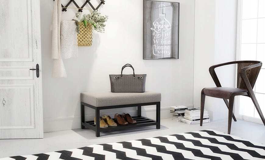 Отдельная обувница — неплохой вариант хранения обуви, если места мало. Когда семья большая, и обуви много, присмотритесь к закрытым моделям. Они смотрятся аккуратнее, чем открытые полки. В просторной зоне дополнит шкаф тумба или консоль. Здесь на подбор модели влияет общая стилистика. Можно выбрать и более минималистский предмет, например, из стекла и металла, и декорированный — деревянный на тонких изящных ножках. Небольшой пуф из бархата, металла или дерева — изюминка профессионального оформления. Фактура и глубокий цвет добавят нотку аристократичности интерьеру.