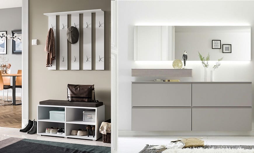 Шкафы для обуви: если позволяет пространство, можно установить небольшой шкаф для обуви. Он может быть открытым или закрытым, в зависимости от ваших предпочтений.