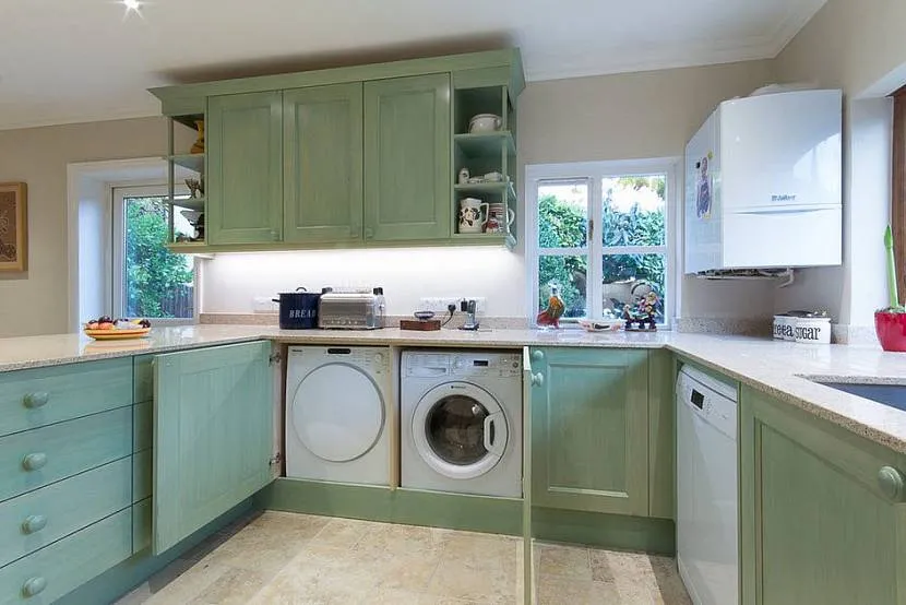 - Часто бывает, что на кухне больше места для стиральной машины. Это дает вам большую свободу в выборе наиболее подходящей модели.