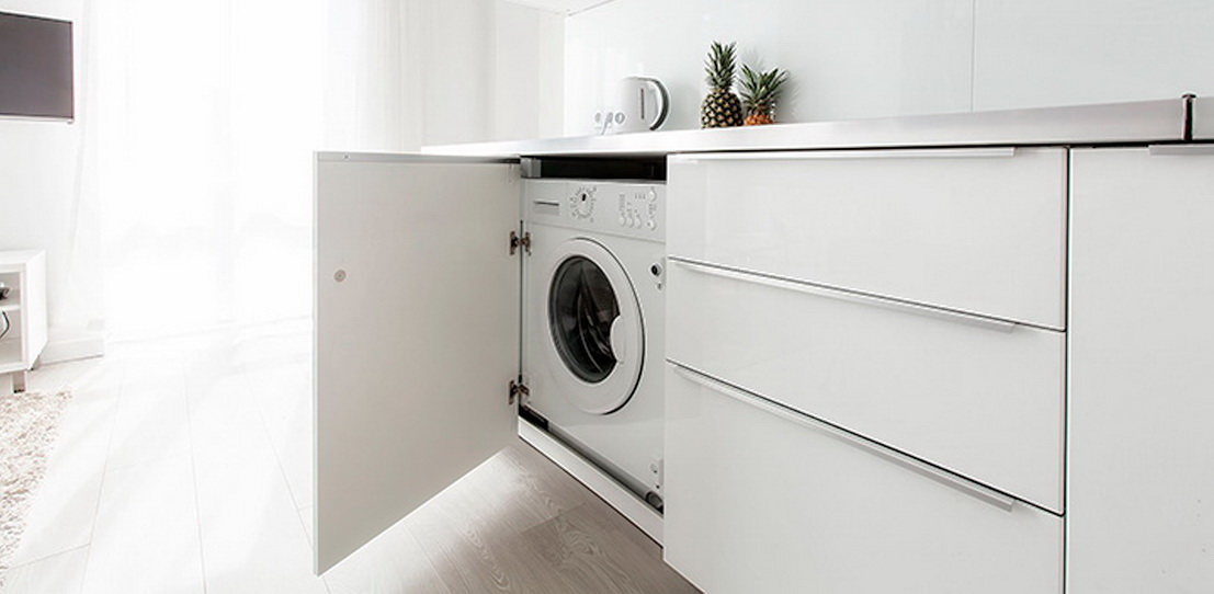 Встроенная стиральная машина за фасадом кухонного гарнитура