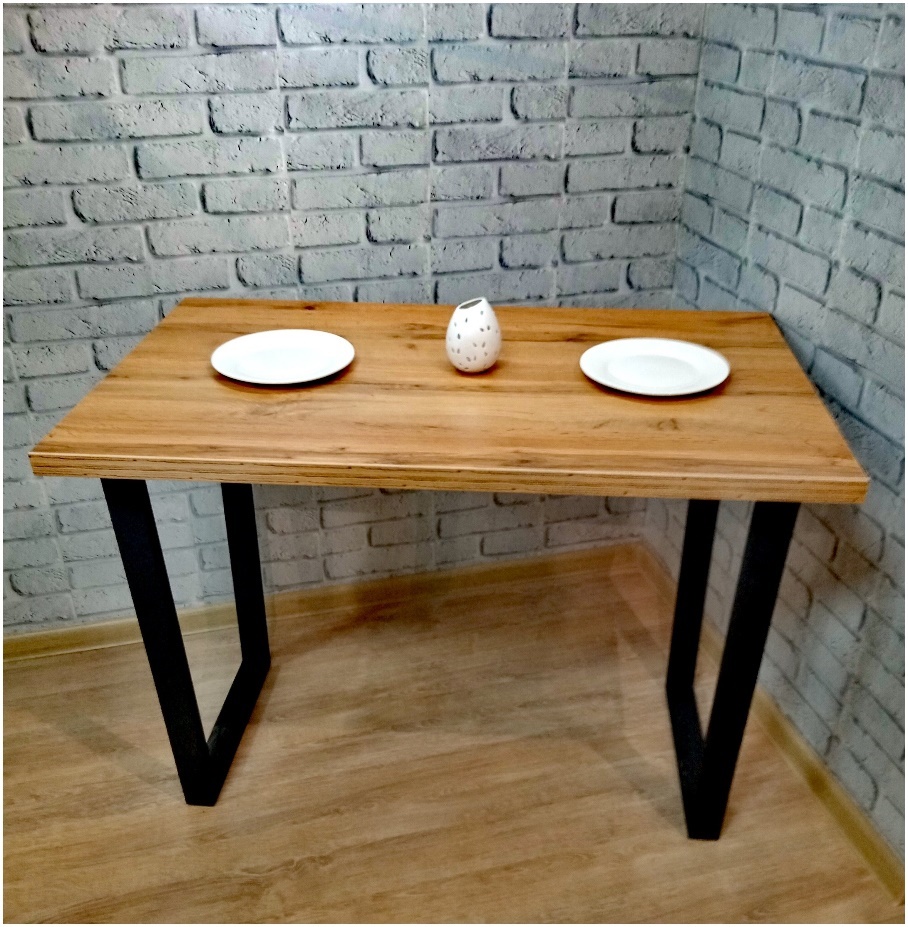 - Стол-трансформер хорош для маленьких кухонь. Он бывает с раздвижной или откидной столешницей. В собранном виде вполне устроит двух обедающих вместе людей, а для приема гостей его можно разложить.