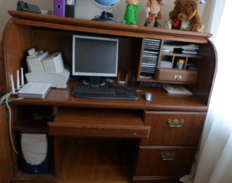 бюро – модель, которая совмещает в себе комод и рабочую столешницу. Чтобы сэкономить пространство, ее помещают в большой тумбочке.