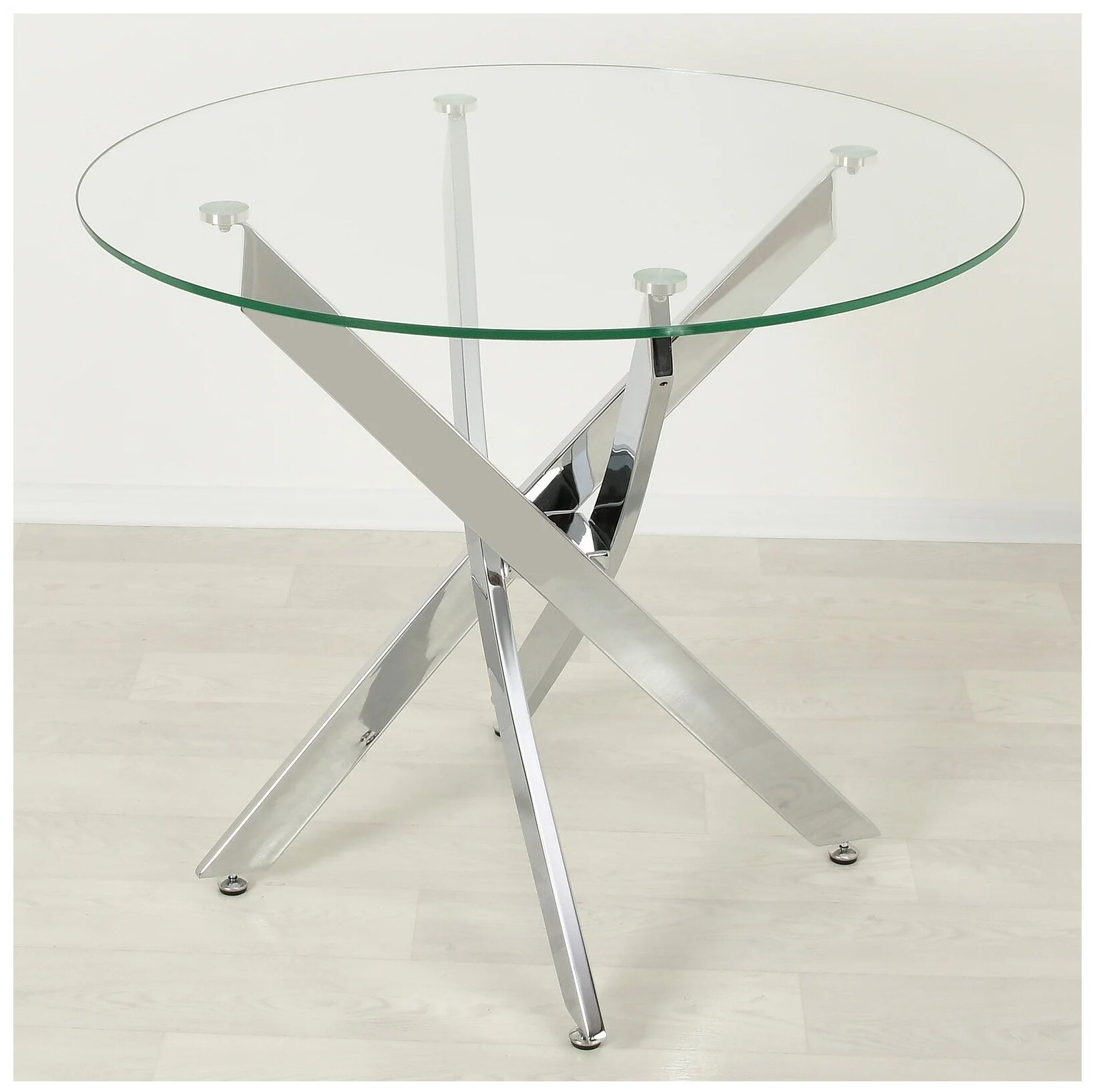 Mebel Apartment Рим 18 – обеденный стол, рассчитанный на 4 персоны, оформленный в современном оригинальном стиле, сделанный из прочных и долговечных материалов, обладающий отличной эргономикой. Диаметр стеклянной столешницы составляет 100 см, а толщина 10 мм. Крепление к стальным ножкам с хромовым защитным покрытием осуществлено на болты. Изогнутая форма ножек обеспечивает столу весьма привлекательный вид, но и без негативного влияния на практичность использования. В нижней части установлены устойчивые опоры с мягким основанием, которое исключает повреждение декоративного напольного покрытия. Для удобства расположения есть возможность регулировать опоры по высоте, добиваясь максимально надёжного положения. Высота столешницы над уровнем пола составляет 75 см.